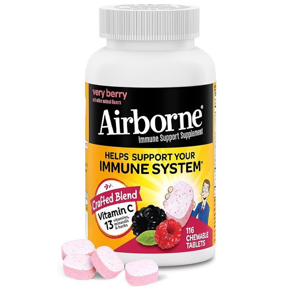 - VITAMIN C 1000mg: Airborne Vitamin C chewable Zinc tablets are packed with 1000mg Vitamin C per serving, which helps support your immune system.