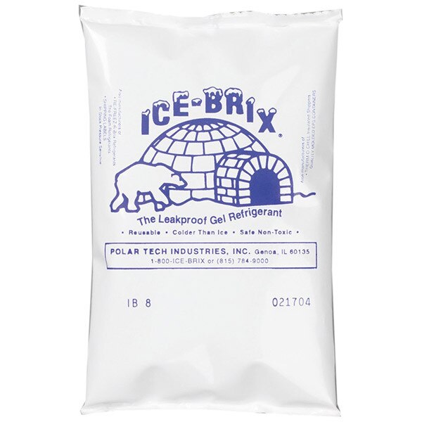 Ice Brix Cold Pack, 3 oz Capacity, 5" Length x 2-3/4" Width x 3/4" Height SKU ICE-Brx3BPD-3oz Please log in to see price or purchase this item Quantity discounts available QuantityPrice (0)No Reviews yet Ratings & ReviewsNo reviews availableBe the first to Write a Review